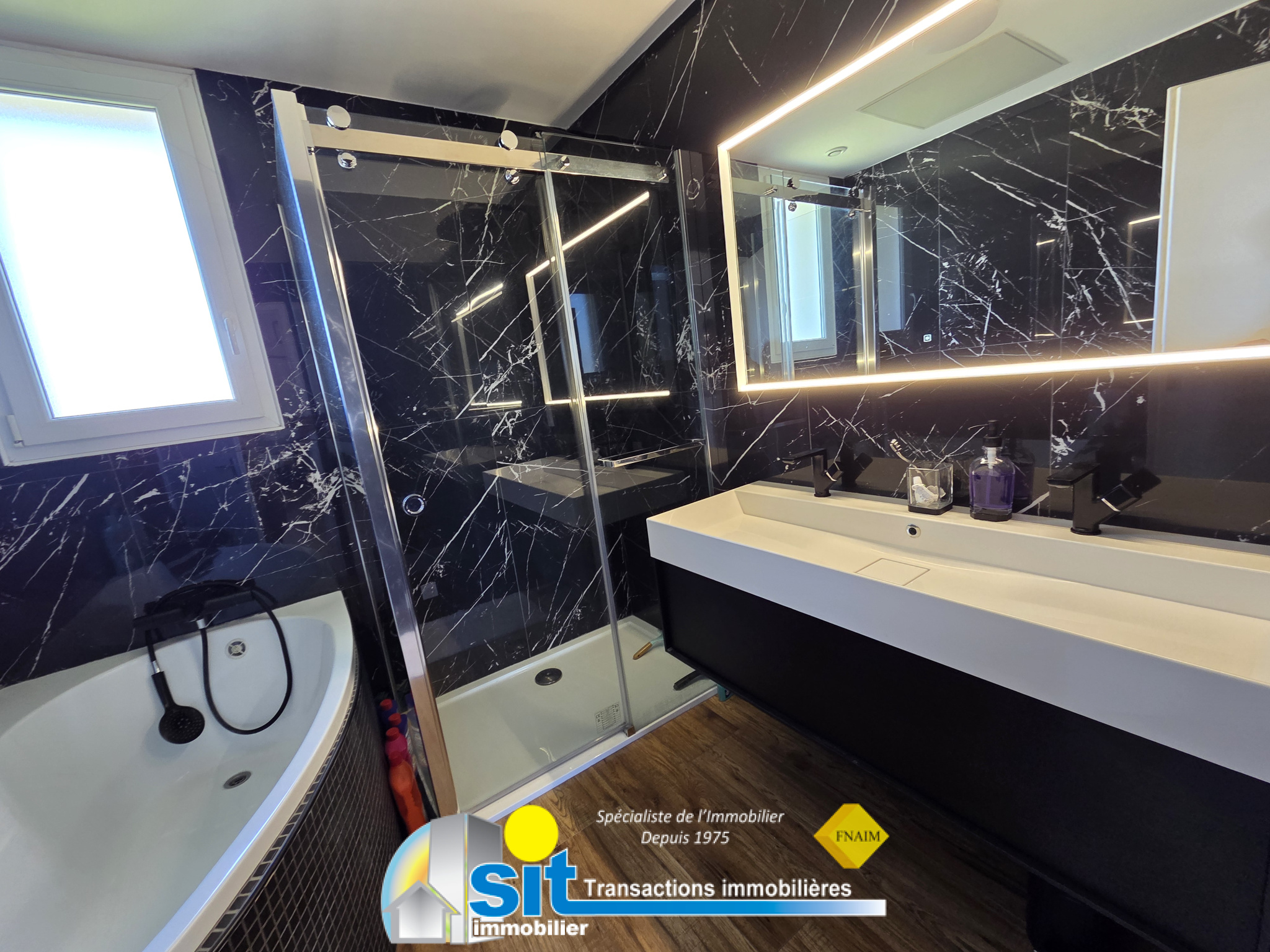 L’ensemble, entièrement rénové en 2021, bénéficie de nombreuses ouvertures apportant une belle luminosité ainsi que d’une climatisation réversible pour un confort optimal en toute saison.