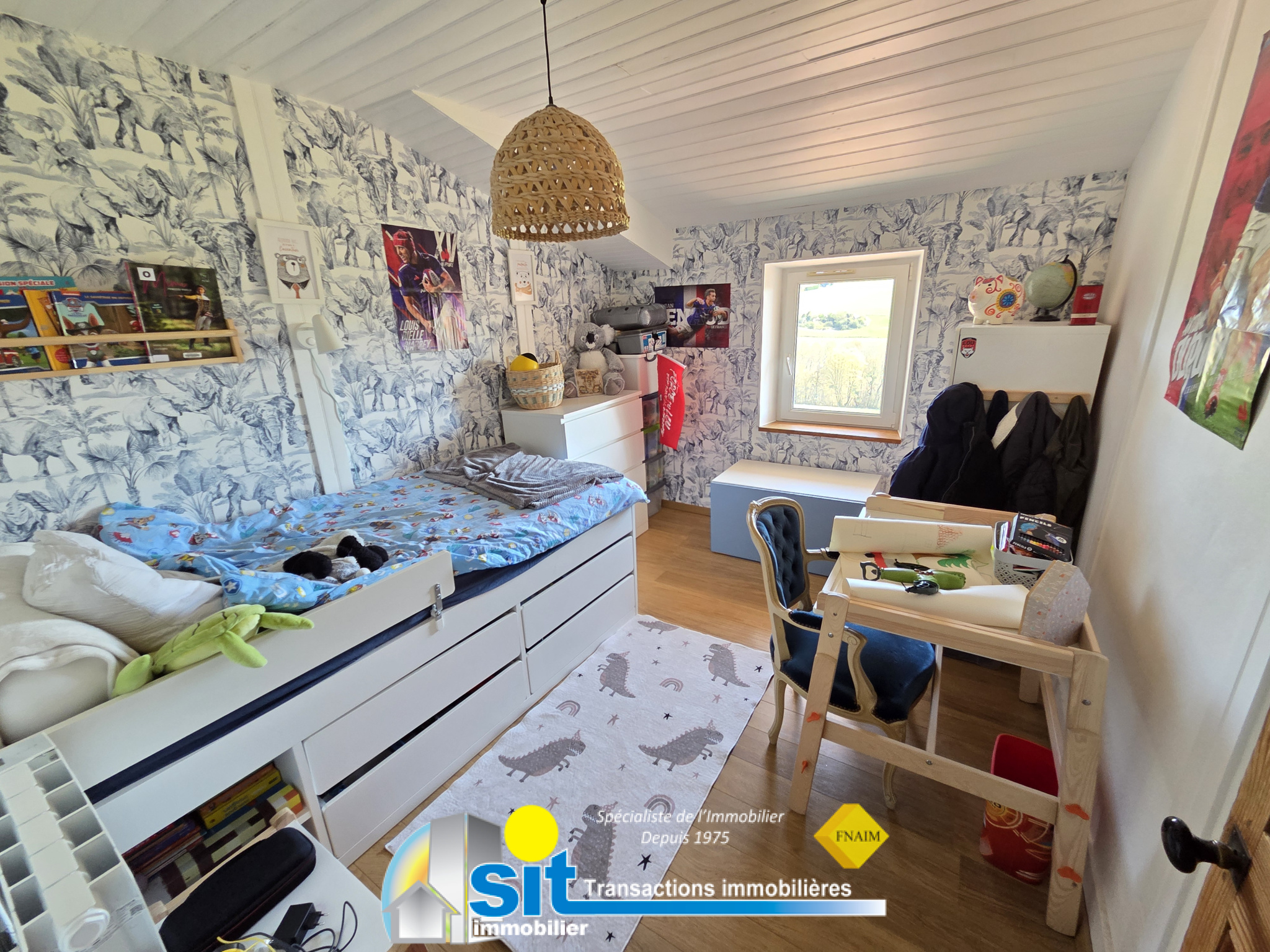 Vous disposerez également de 3 chambres, d’un bureau, d’une salle de bains avec baignoire et douche, ainsi que d’une buanderie avec WC.