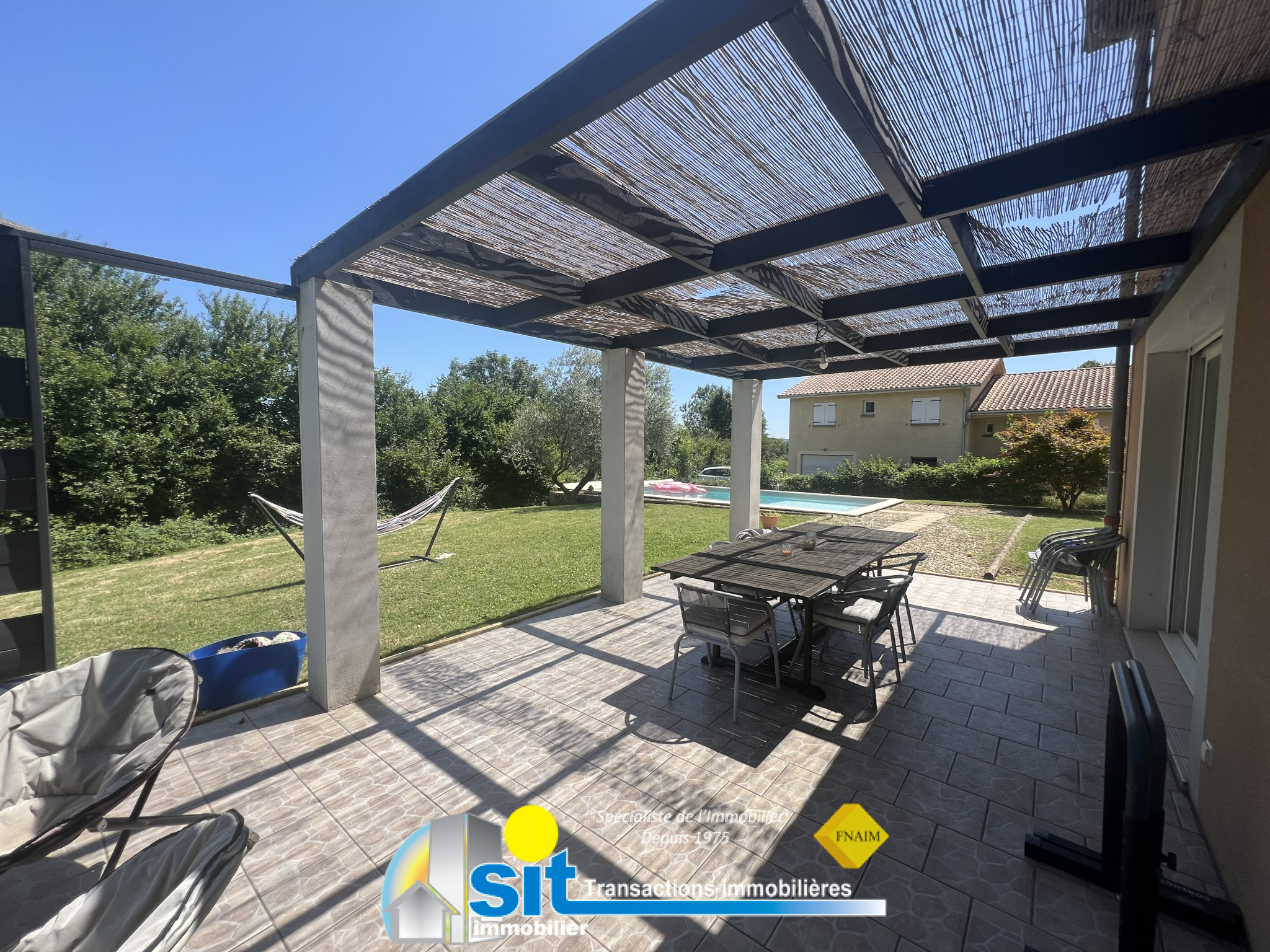 L'agence SIT IMMOBILIER vous propose à la VENTE et en EXCLUSIVITÉ cette VILLA édifiée en 2006, offrant une jolie vue sur la campagne, d'environ 120 m² habitables avec 4 CHAMBRES, sur un terrain de 1 300 m² avec PISCINE.