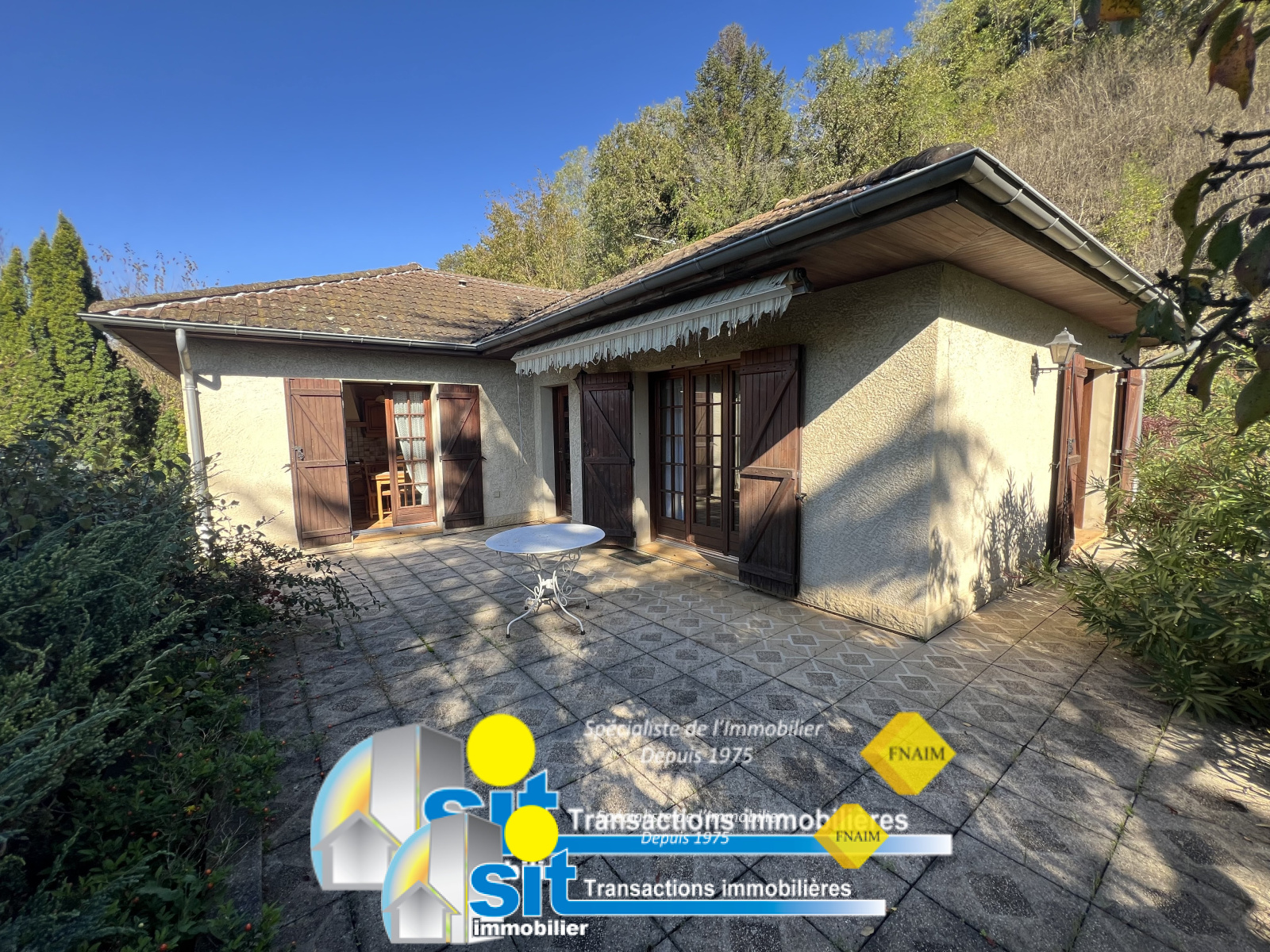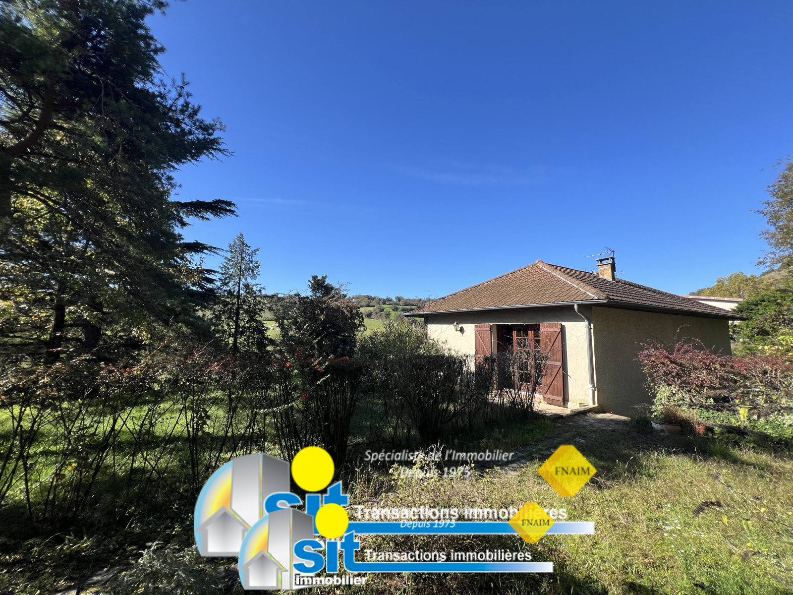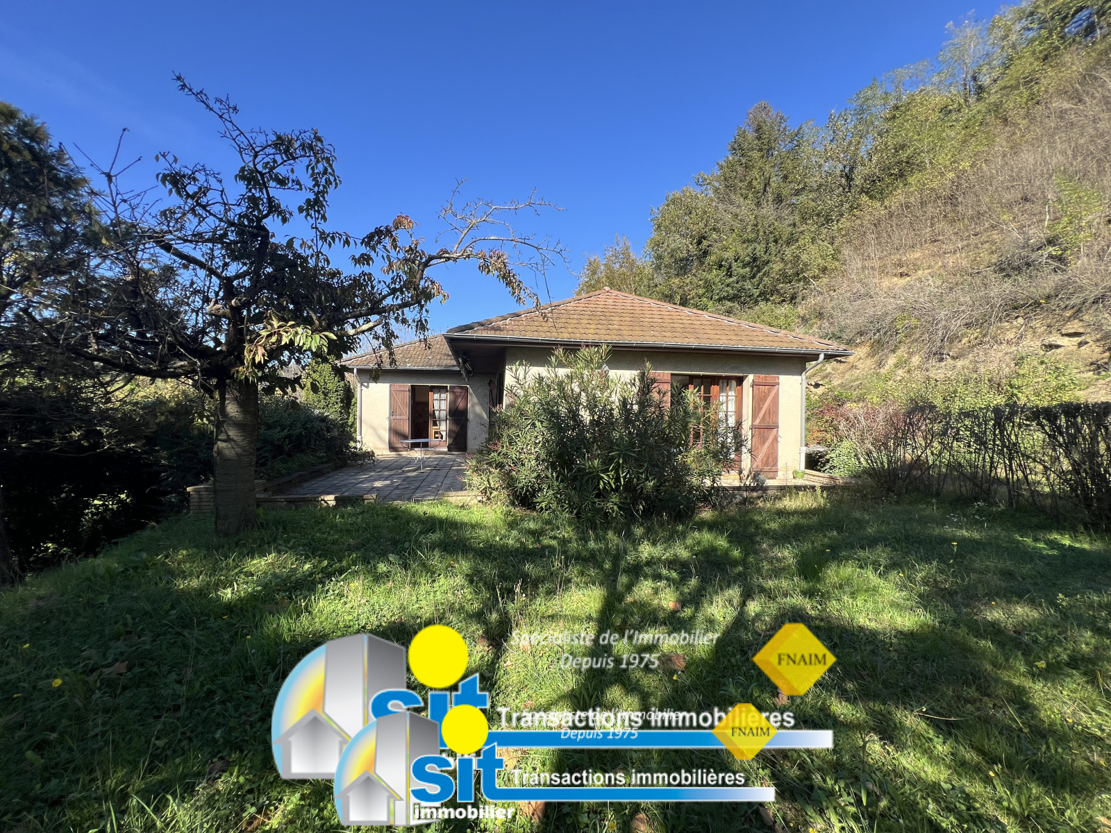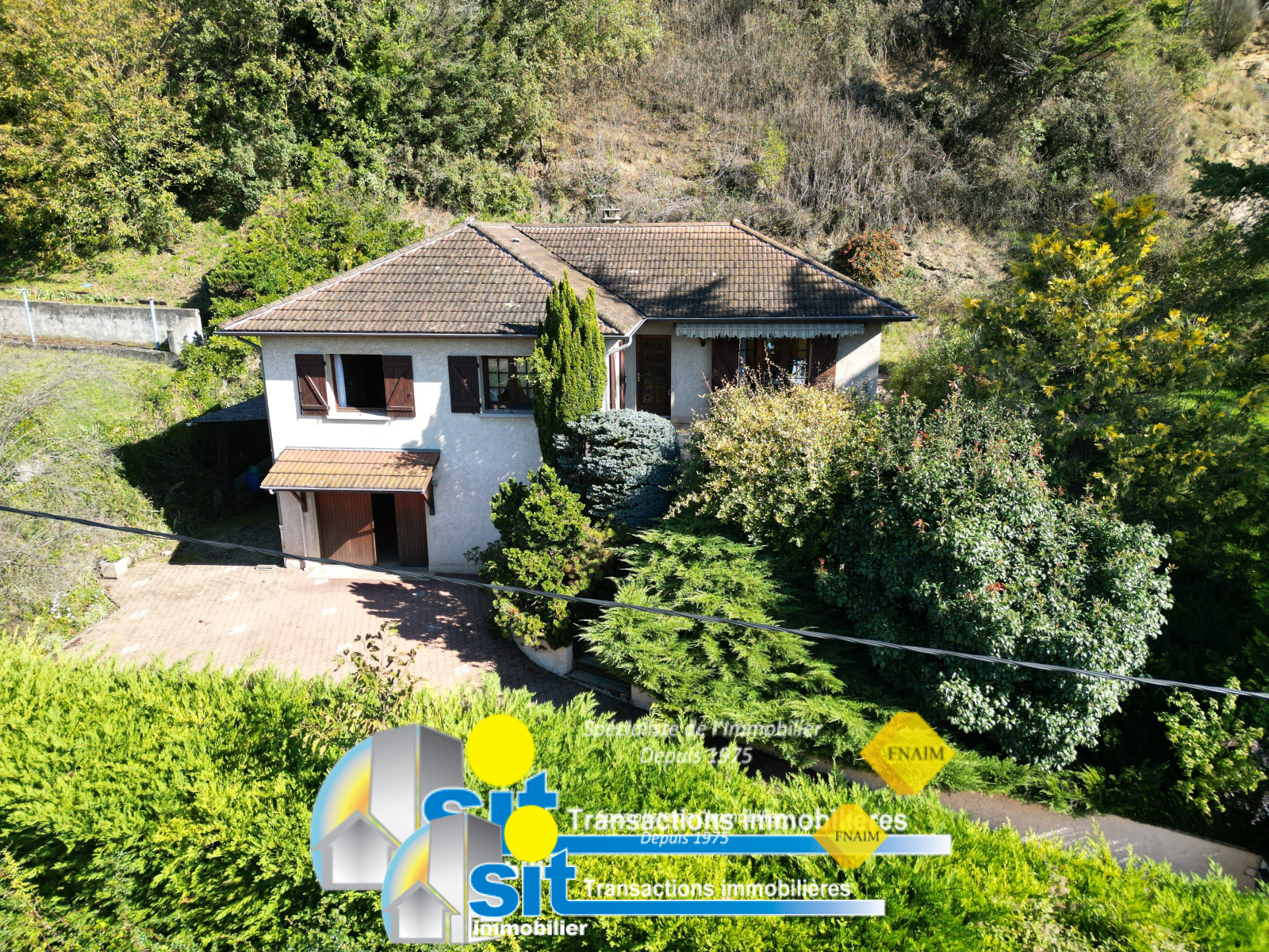SIT IMMOBILIER vous propose cette charmante maison de 95 m² habitables, édifiée sur un sous-sol complet, sur un terrain arboré de 2765 m² (dont environ 2000m² en coteau).