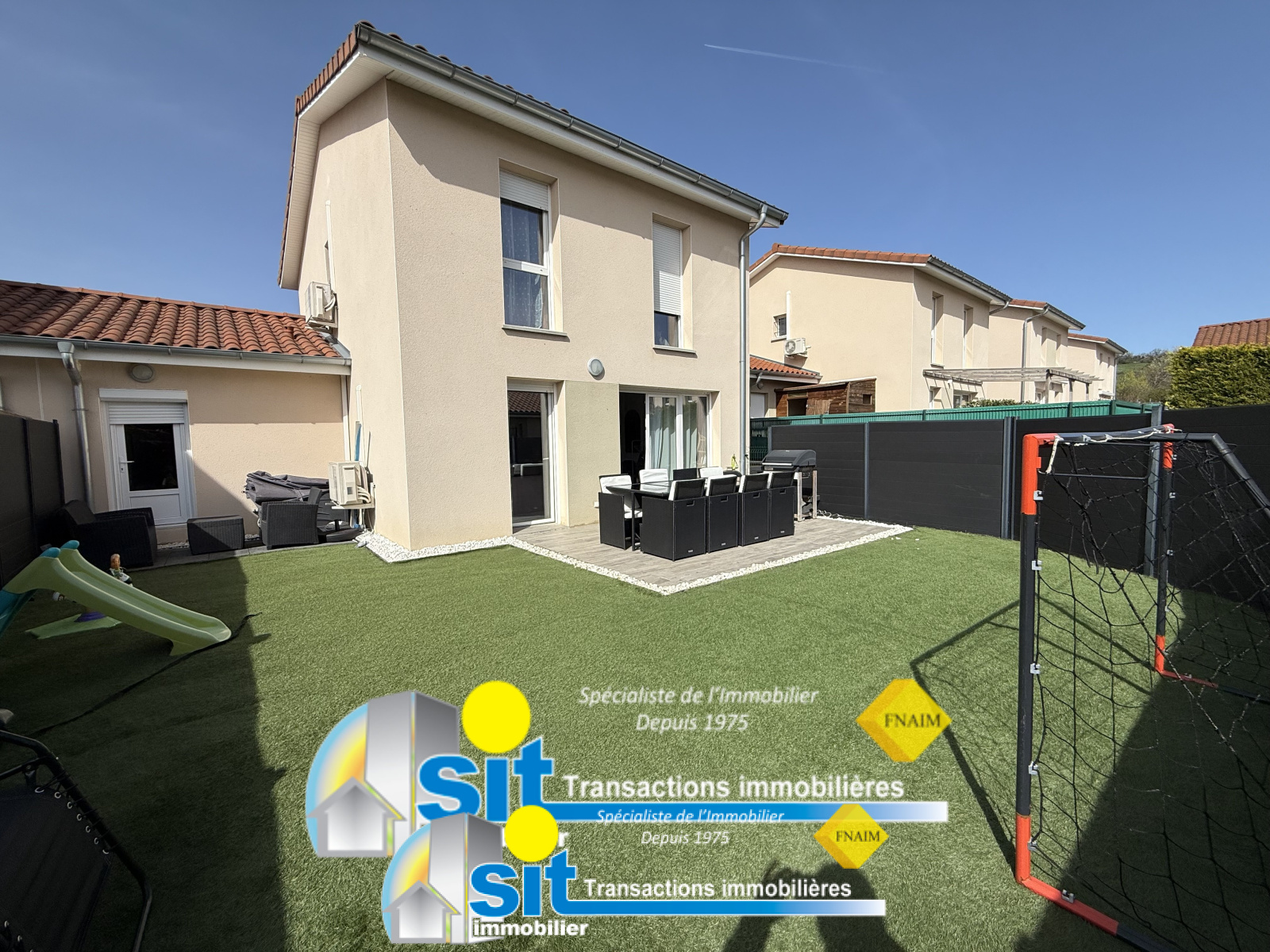 L'agence SIT IMMOBILIER vous propose à la VENTE et en EXCLUSIVITE, cette VILLA de 2015 aux normes RT2012, jumelle par le garage -