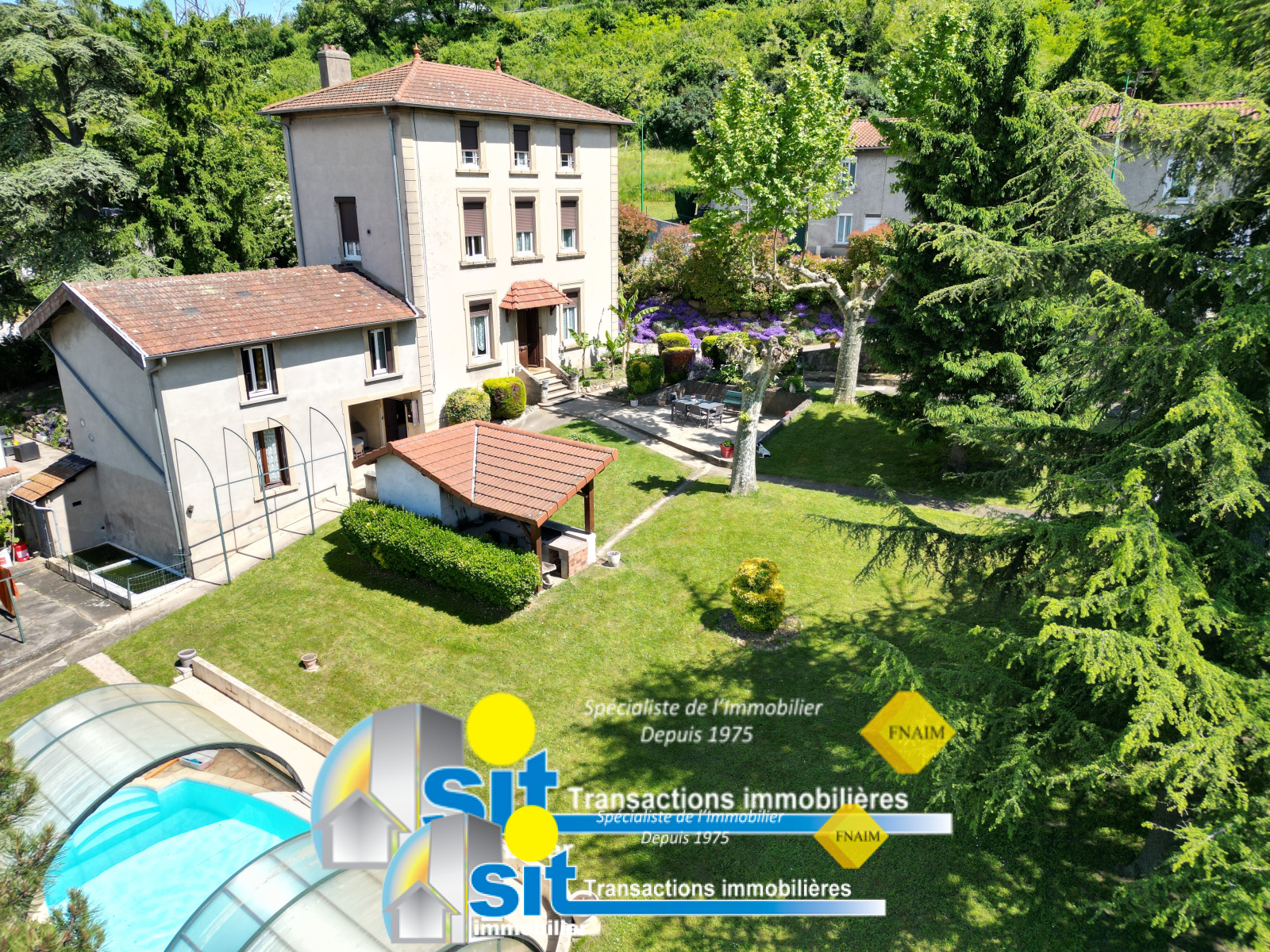 L'agence SIT IMMOBILIER vous présente en EXCLUSIVITÉ cette MAISON DE CARACTÈRE nichée dans un cadre verdoyant, sur un terrain clos et arboré de 1 872 m² avec PISCINE.
